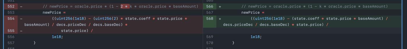 合約程式碼的檢查發現,在將 BaseToken 轉換為 QuoteToken _calcBaseAmountSellQuote函數期間,價格資料處理機制有缺陷。