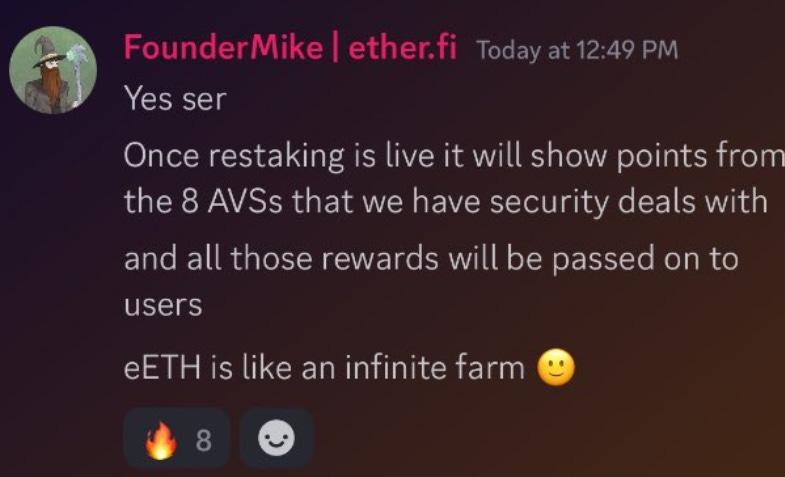 據Etherfi團隊稱,8 個 AVS 將很快開始向 EtherFi 的 eETH 流動重新質押代幣持有者分發積分或代幣獎勵。