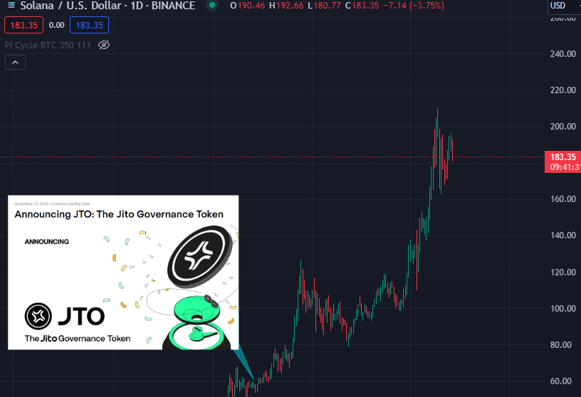 大規模空投可以對生態系統產生巨大的積極影響,因為它們會為生態系統注入更多流動性。例如,在 2023 年 11 月宣佈推出 $JTO 之後,$SOL 發生了以下情況:
