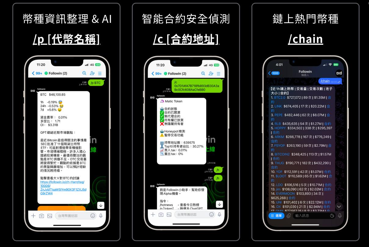 Followin LINE機器人還有多个功能,且功能會根據行業發展快速更新。如BTC銘文