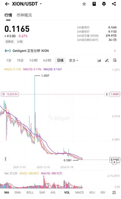 ①現在 $XION 流通市值不到1000萬美元,排名都1500開外了