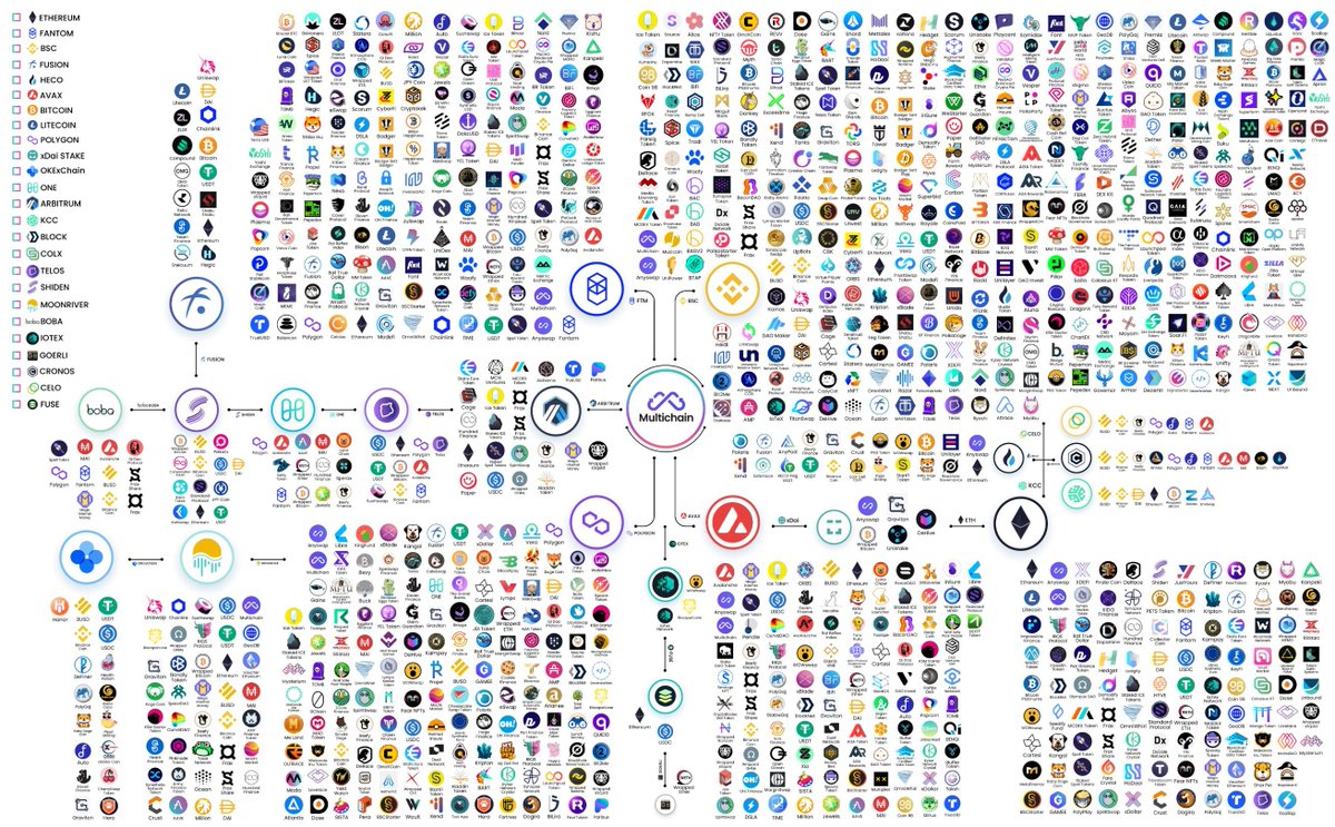 整理桌面時翻到這張老圖,感慨萬千。 這是 2021 年 Multichain(前 Anyswap)官推發佈的數據,當時它已支持 25 條公鏈、連接 1153 個生態項目。彼時,公鏈百花齊放,跨鏈橋堪稱“印鈔機”。 短短几年,圖上近半數項目已銷聲匿跡,Multichain 自身也深陷風波。公鏈敘事像是被證偽,跨鏈橋用戶數量驟降。