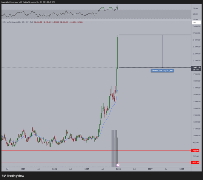 對於大宗商品市場的參與者來說,這絕對是一段動盪的時期。 鉑金價格一度飆升至 2500 美元,隨後三天內下跌超過 20%。 平心而論,這種市場劇烈波動通常預示著這輪上漲行情即將結束。 同樣的情況也適用於其他商品。