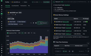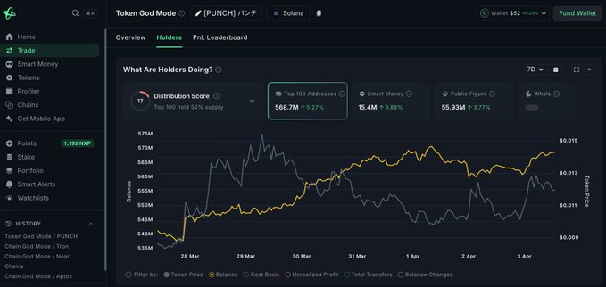 $PUNCH Smart Money 在Solana上的餘額已連續 7 天攀升 - 上漲 9.89%,而價格幾乎沒有變化。 7天內持倉情況細分: 精明投資者:上漲 9.89% 公眾人物錢包:上漲 3.77% 外匯流出:-56.2萬美元 skk2000.sol 是本週最活躍的智能資金買家——僅7天就增持了210萬枚代幣。