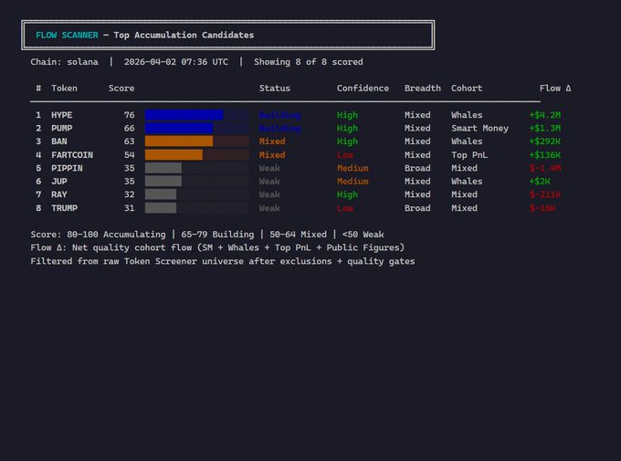 鯨魚不會在市場中買入。他們會在數週內緩慢積累。 使用 @openclaw 工具來追蹤他們的持倉方向,並驗證持有者基礎的質量。 最佳工作流程是使用 nansen-dca-tracker 和 nansen-holder-analysis 命令行工具。只需幾條命令即可獲得積累信號並進行質量檢查。👇