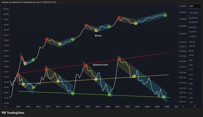 這是比特幣歷史上的第五個信號。 商業週期拐點。 前四個拐點都開啟了長達數月的牛市。 請注意,本輪商業週期與以往截然不同。 因此,本輪比特幣週期的感受也截然不同。 價格將持續上漲更長時間。最佳行情位於中線上方。