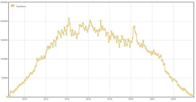 Stack Overflow 每月提問量圖表。 我的天。