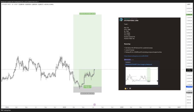 成功回到區間範圍內 根據這種情況調整我的偏向,尋找區間的重新測試以進行做多 目前的總體偏向 #以太 twitter.com/RektProof/status/1...