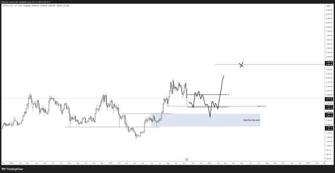 ETH的一般 HTF 偏差 我們可能會在接下來的幾天內形成一個區間,在陷入月度需求之前重新測試一些以上的水平 低於相同低點且 HTF 目標是 6k+