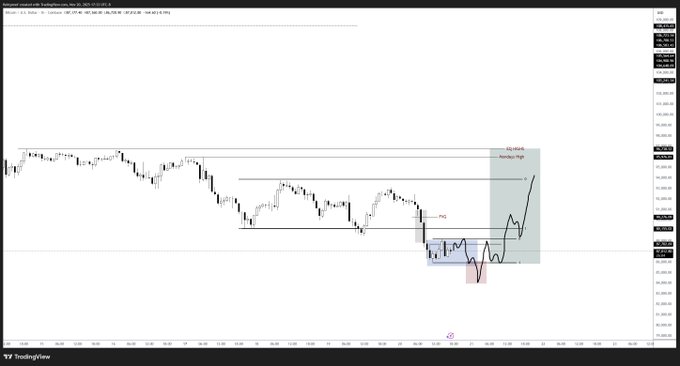 尋找短期 PO3 機會 理想情況下,價格會在一個區間內波動,然後再次下跌,突破區間後回落,為價格上漲至高點和未來價格目標 (FVG) 提供最大賣出點 (MSB)。 #比特幣