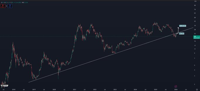 白銀價格在不到六個月的時間裡上漲了150%。 僅此而已。 twitter.com/CryptoKaleo/status...