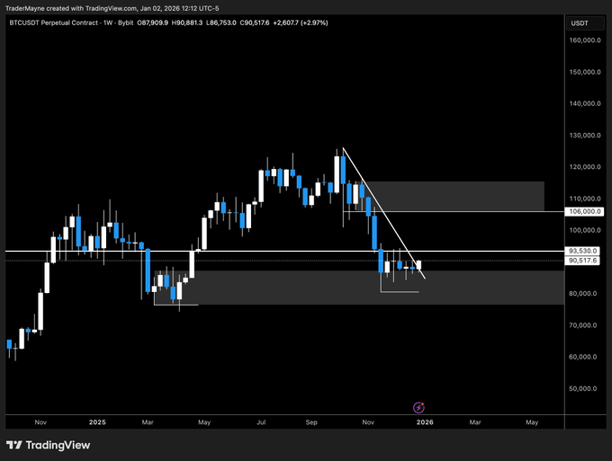 $BTC 需要重新奪回的關鍵點位是2025年的年度開放。