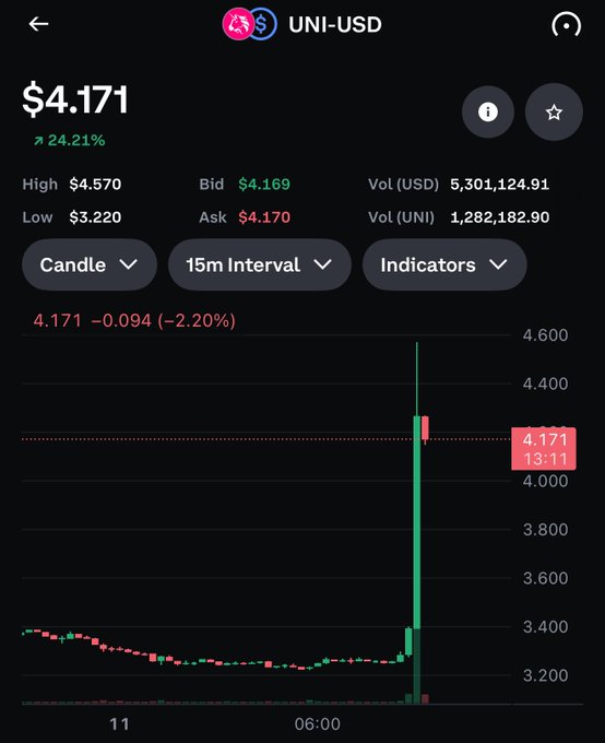 根據《財星》雜誌報道,貝萊德將購買 Uniswap 代幣,作為其進軍 DeFi 領域的一部分,受此消息提振,Uniswap價格飆升。