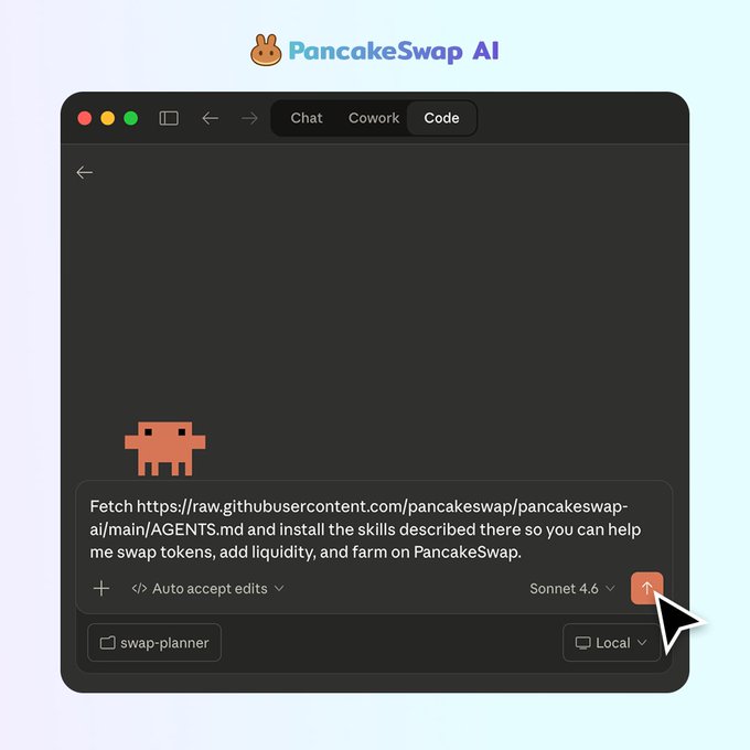 只需一個提示,你的AI代理就能在PancakeSwap上規劃互換、流動性支持和資源農場😯 將此內容複製粘貼到 Claude Code、Cursor 或任何代理中👇