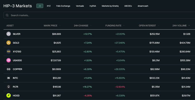 令人難以置信的是,鏈上股票和金屬的交易量和未平倉合約量竟然如此龐大,而且全天候24小時不間斷,無需KYC認證,全球任何擁有WiFi連接的投資者都能輕鬆參與。 傳統金融分析師們會理解這個故事,然後他們會看到現金流。 twitter.com/andyyy/status/2018...