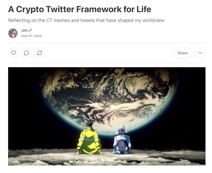 這篇文章寫得很好,也很好地展現了加密貨幣是如何塑造我的世界觀的。 我知道我來晚了/已經暫時離開,但如果你還沒讀過,這篇文章值得一讀(+訂閱 nosleep 博客) twitter.com/benroy_x/status/19...