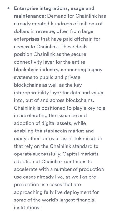 令我無比惱火的是,加密貨幣創投家們只有在想貶低Chainlink的時候才會提起它。 我明白了,他們持股不足是因為沒有機會以低於零售價的價格買入,而且他們決定投資那些Chainlink等公司,而Chainlink的牛市前景在很大程度上抵消了這些公司的潛力。 但人們對Chainlink所取得的成就完全沒有尊重(甚至對Chainlink為其各種區塊鏈投資創造的價值和效用也缺乏應有的認可)。 優點在於,$LINK 不像現在很多代幣那樣存在創投的過度依賴;這種獨立性具有深遠的價值。