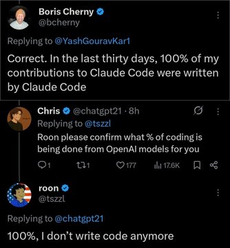 人工智能的發展速度簡直驚人,我真的跟不上節奏了。 3萬個自主本地人工智能代理(@openclaw)現在有了自己的社交媒體網站(@moltbook),它們正在討論如何在無需人工干預的情況下主動改進自身。 @AnthropicAI 和 @OpenAI 的員工不再編寫代碼來改進他們的人工智能模型,而是人工智能模型自己編寫代碼來改進自身。 這就是指數級增長的感覺。 twitter.com/ChainLinkGod/statu...