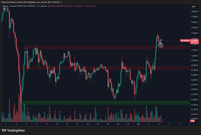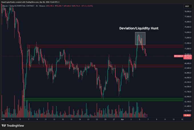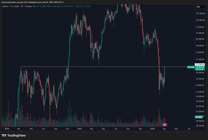 $BTC 持續發展的高點是 74K 美元。