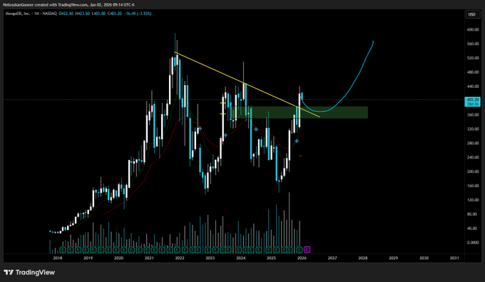 $MDB 圖表走勢穩健。如果回踩支撐位,可能是一個不錯的風險回報機會,有望衝擊歷史新高。