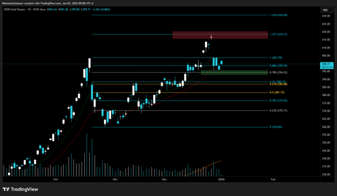 $GLD 仍持有空頭頭寸,止損位設在盈虧平衡點。目前僅佔投資組合的4%,但走勢穩健,值得繼續持有,看看能否跌破0.786斐波那契支撐位。 twitter.com/Nebraskangooner/st...