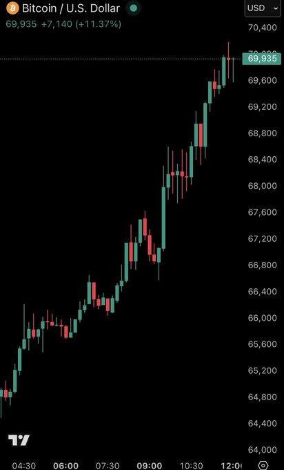 突發:比特幣重回 7 萬美元大關,不到 24 小時上漲 1 萬美元。