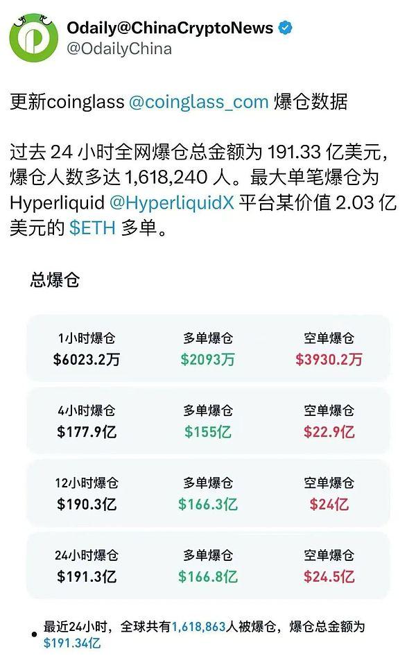 加密市場遭血洗 24小時爆倉超191億美元超歷史之最