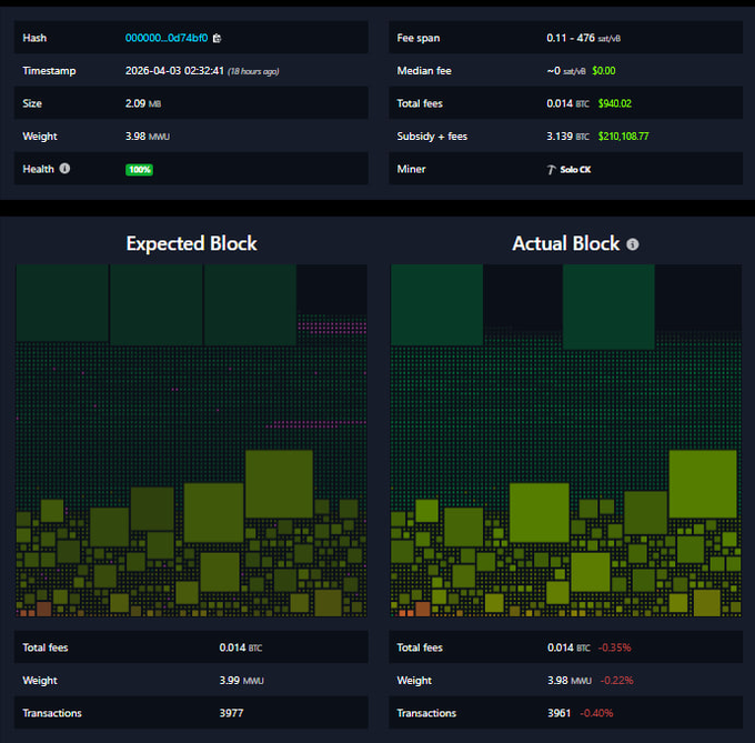 孤膽英雄‼️ 一位單人礦工獨攬 3.139 $BTC($210K)的全部區塊獎勵。🔥