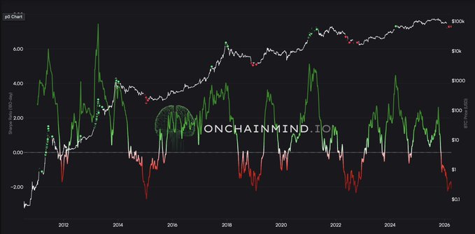 比特幣的夏普比率目前已達到與重大反轉點相關的水平!👀 來源:@OnChainMind 🤝