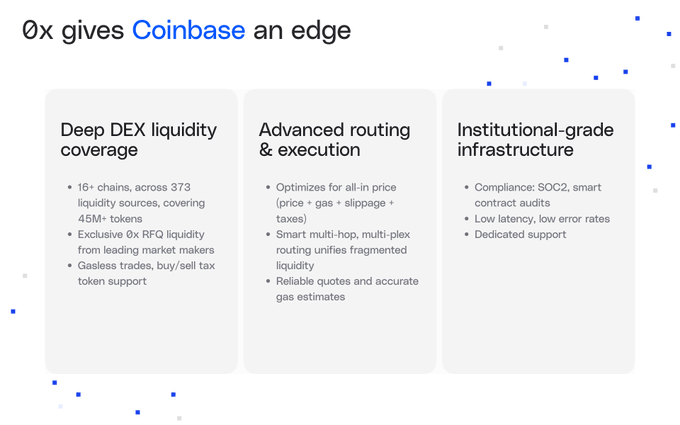 0x 為 Coinbase 旗下所有產品提供代幣交易支持。 我們構建的基礎設施能夠可靠地服務於數十萬交易者,並具備大規模應用能力。 以下是具體示例👇