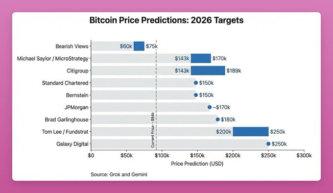我對BTC2026年的價格預測是17.4萬美元。 去年預測失誤後,大家都不敢輕易做出預測。不過,分析師和機構普遍認為BTC在2026年底價格會更高:15萬美元是一個比較穩妥的預測。 這是 59% 的增幅。 但我喜歡17.4萬美元這個數字。其實很簡單: 作為
