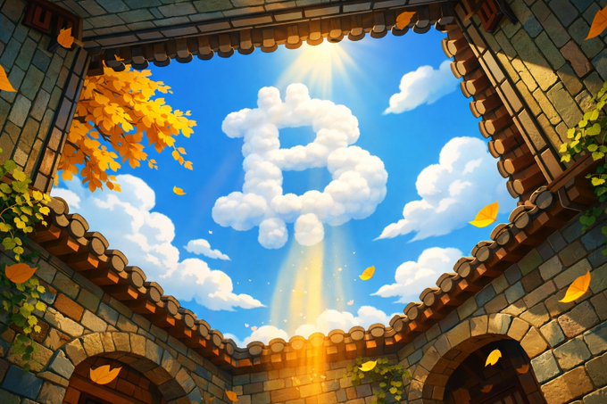 有時候,你只需要抬頭看看。 藍天,金黃的樹葉,還有云朵上閃爍的 $BTC ☁️ 今天 Web3 感覺真不錯。 #比特幣 #Web3