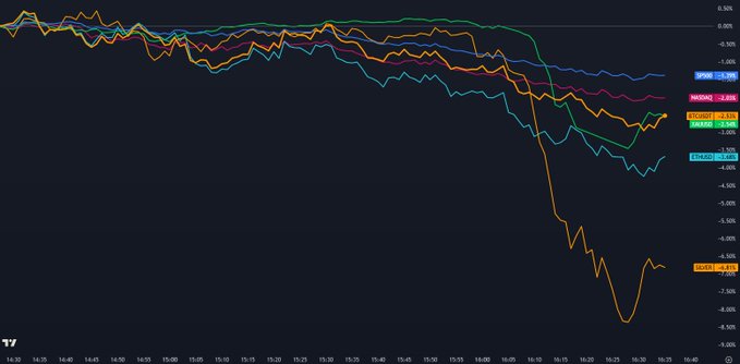 加密貨幣、美國股票和金屬同時遭到拋售。