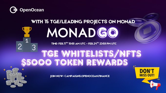 勢頭強勁! 📈 已有數千人在 MonadGo 上進行交易、賺錢並升級。 現在加入,分一杯羹還來得及! 👇 twitter.com/OpenOceanGlobal/st...
