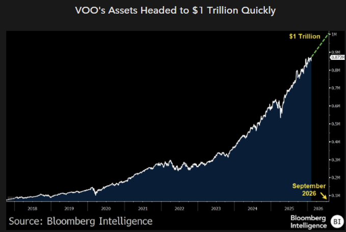 今天寫了篇文章,說說「VOO & Chill」如何正式成為美國交易標的,這只ETF今年(9月1日之前)的規模將突破1萬億美元,屆時它將穩坐全球最佳ETF(GOAT)的寶座。去年,$VOO 的規模成長了2,500億美元,相當於每天成長10億美元。不到一年前,它的資產規模就超過了SPY,現在比其他ETF高出1000億美元,資金流入量更是其他ETF的兩倍。它為何如此強勢?因為透過著名的標普500指數,以幾乎零成本的方式,從一家備受信賴的資產管理公司投資於全球最具活力的股票市場,而且這只ETF流動性極強,稅收效率高,可以說是投資史上最有價值的方案。任何人都可以輕按滑鼠就參與其中。感謝各位聆聽我的TED演講。