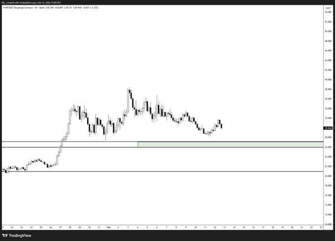 $HYPE 仍在等待綠價(27-26美元)的複測。 日線和4小時圖的走勢有很多重合之處。