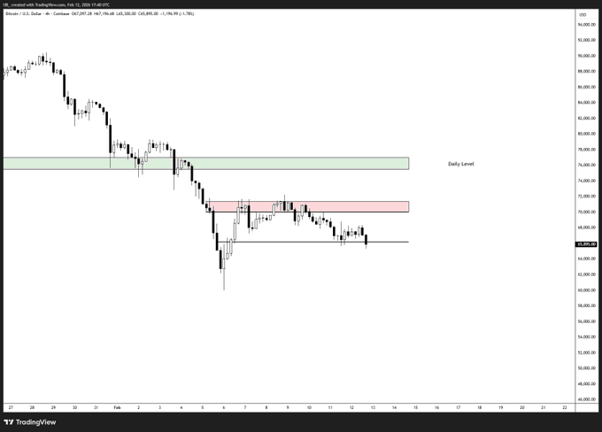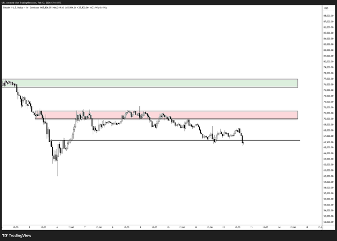 比特幣 / $BTC 未能收在 66.2 萬美元上方有點令人擔憂。 - 可能突破 4 小時圖盤整區間。 - 跌破 1 小時圖突破點。 下方沒有太多明顯的支撐位。我很容易預見到價格會迅速上漲至 62 萬美元中段。