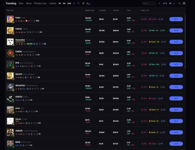 我真希望梗幣真的回來了…… 但是一小時熱搜榜都變成這樣了…… 市值只有5500美元居然上了熱搜…… 拜託!