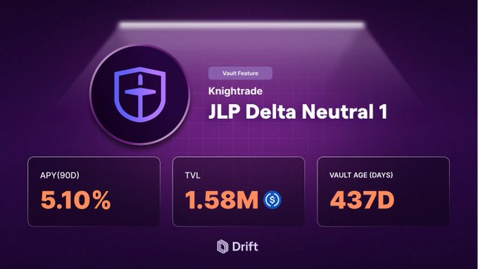 Drift Vault 精選 #2:@KnightradeTeam JLP Delta 中性 1 該金庫: • 通過 Drift Vault 為 Jupiter 提供流動性 • 全天候自動對沖,並採用系統性風險管理 • 捕捉費用、獎勵和市場低效 • 以 USDC 計價,確保穩定性