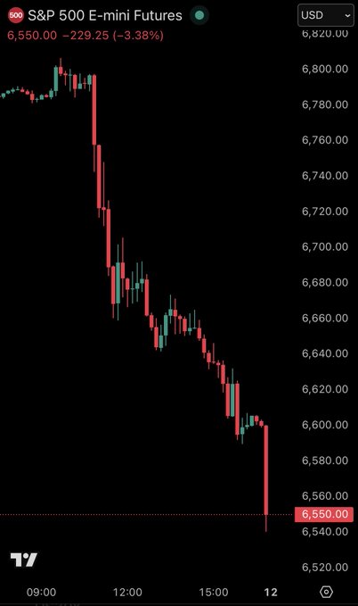 突發新聞:由於特朗普總統宣佈對中國商品加徵100%關稅,標普500指數期貨當日跌幅擴大至-3.5%。 這意味著過去6小時內跌幅達-2.5萬億美元。
