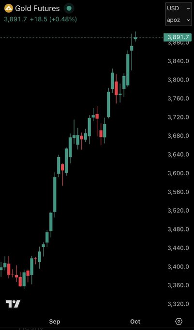 突發消息:隨著美國政府關門開始,黃金期貨價格歷史上首次突破 3,900 美元/盎司。
