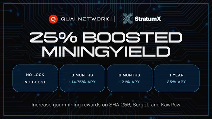 StratumX 現已獨家推出 25% 挖礦收益提升! 選擇 3 至 12 個月的鎖定期,即可獲得額外獎勵。 所有區塊獎勵將直接發送到您的錢包,並可在 @PelagusWallet 中全程追蹤。 支持 SHA-256、Scrypt 和 KawPow 挖礦算法。