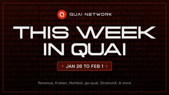 本週回顧: - 營收 36.5 萬美元,QUAI 代幣銷燬 340 萬枚 - Kraken FX 宣佈即將上線 QUAI - Joulie Moltbot 開始收發 QUAI 和 QI,能源貨幣變得更加真實 - go-quai v0.50.0 版本升級成功 - StratumX 所有挖礦算法的挖礦收益提升 25%,全球延遲降低 - PowerPoolMining 宣佈即將支持 Quai SHA-256 和 Scrypt 挖礦 - JGreenhall 和 Mechanical Kalk 的播客系列在 Quai Network YouTube 頻道發佈 - Jackniewold 與 0xalank 合作發佈播客