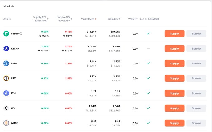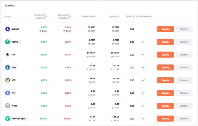 本週來自Conflux eSpace 的最新 Unitus 市場統計。 看到了嗎,匿名用戶? AxCNH 的供應商和借款人的年利率都是兩位數。 💪 twitter.com/dForcenet/status/1...