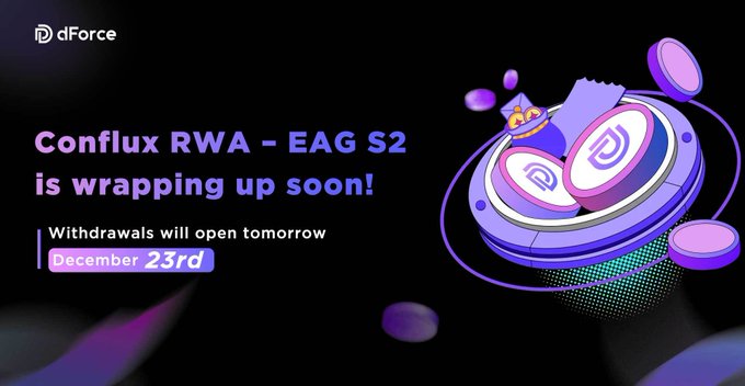 ✅ Conflux RWA – EAG S2 現已正式進入提款階段,存款人可以直接提取本金和應計利息。 非常感謝所有參與者,敬請期待下一屆RWA市集! twitter.com/dForcenet/status/2...