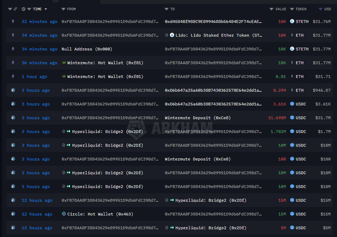 3 小時前,這隻巨鯨0xd45 向 # Wintermute轉賬 31.7M $USDC 以積累 10k $ETH,然後質押到 # LDO。 目前,他持有 3.5 億枚Aave幣和 40,060 枚LDO代幣(約 1.265 億美元)。 地址: intel.arkm.com/explorer/addres...…