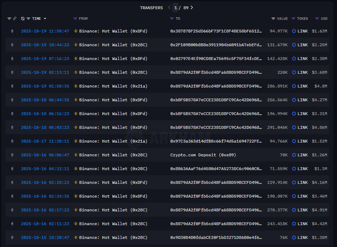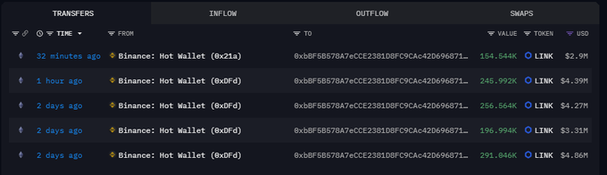 看起來 $LINK 已累積。 在 12 小時內,有 892.46k $LINK(約 1500 萬美元)從 #Binance 提現。 在過去一周內,有 2.31m $LINK(約 4076 萬美元)從 #Binance 提現。 地址: intel.arkm.com/explorer/addres...… intel.arkm.com/explorer/addres...… intel.arkm.com/explorer/addres...…