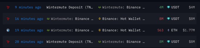 30 分鐘前,# Wintermute向 #幣安 轉帳了 11.48M $USDT 地址: intel.arkm.com/explorer/entity...…