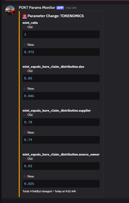 通貨緊縮已開始 PIP-41 通貨緊縮模組已啟用。現在,網路上的每筆交易都會減少 $POKT 的總供應量,使鑄幣量比用於支付吞吐量的銷毀量減少 2.5%。