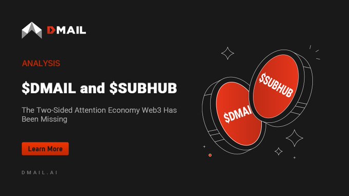 Web3需要一個連線雙方的訊息傳遞層: 💥 $DMAIL = 收件箱(51M+使用者) 💥 $SUBHUB = 儀表板(540+專案) 一個雙邊注意力經濟。 🧠 類似Gmail + Substack——代幣化且錢包原生。 🔗 blog.dmail.ai/dmail-and-subhub...… #DMAIL #SUBHUB #Web3 #加密 #AI
